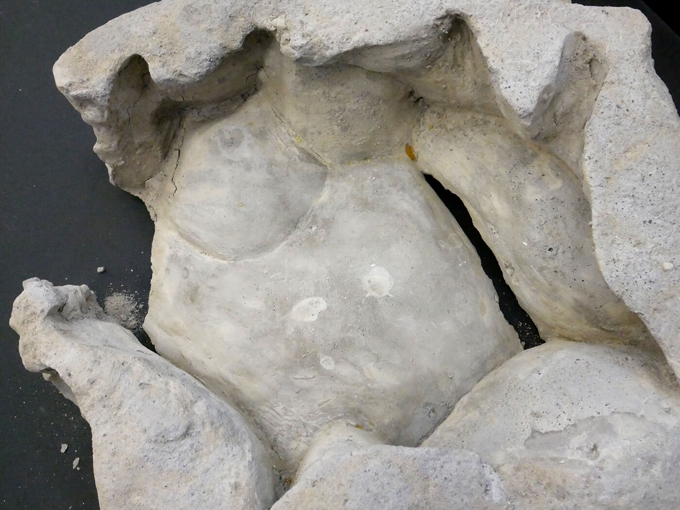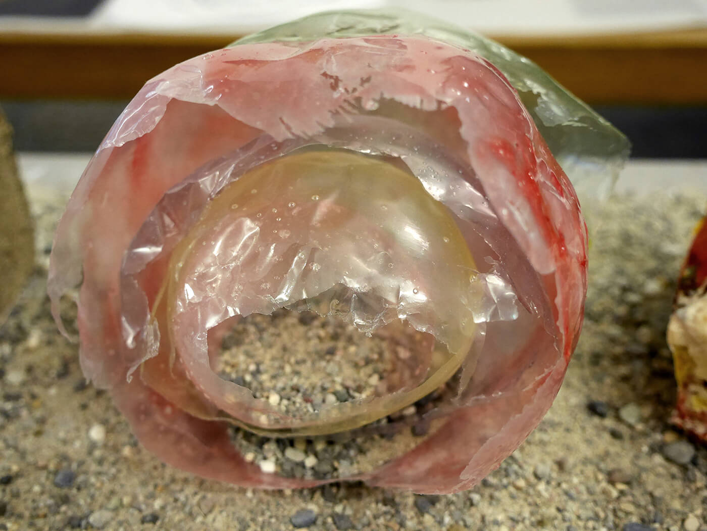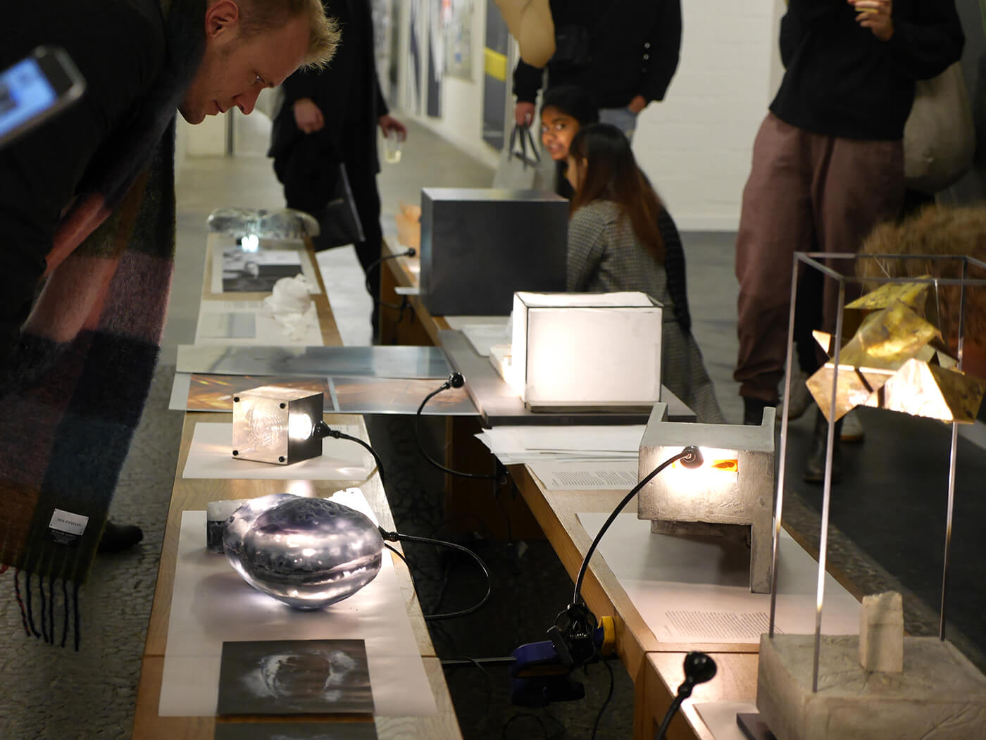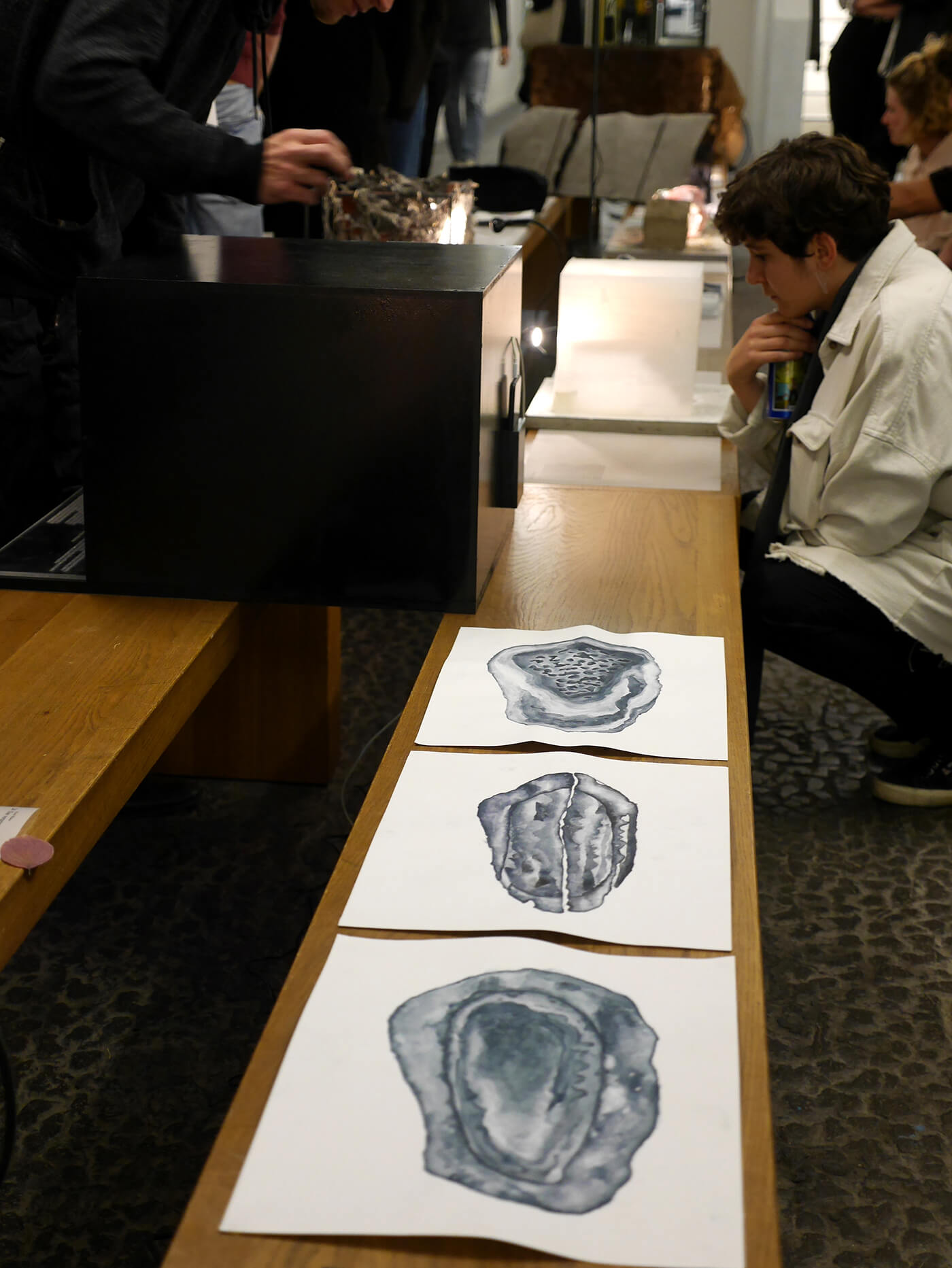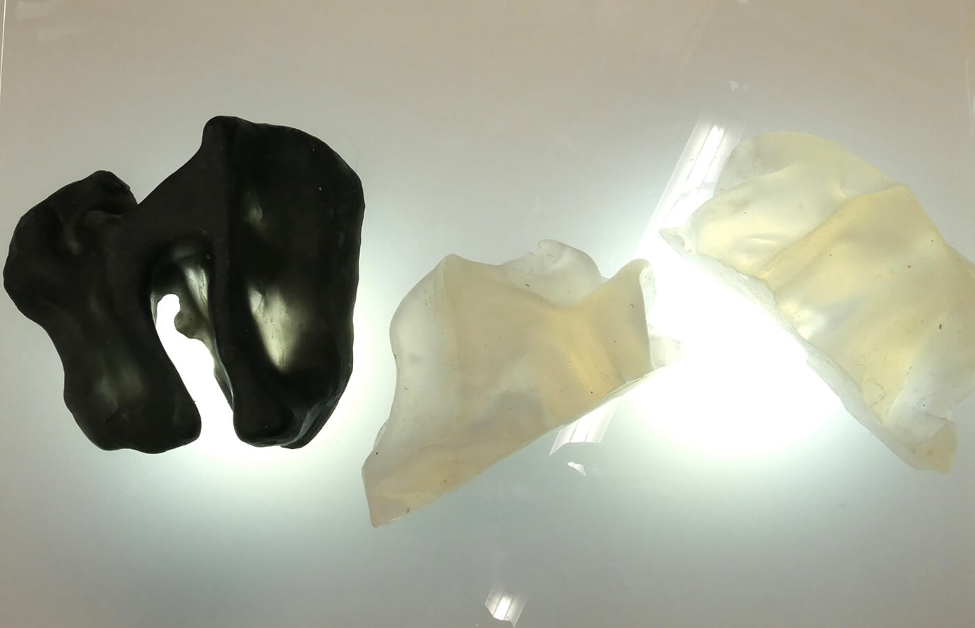 Gelatinehäuser, die zwischen den Zähnen knirschen – schwebende Höhlen – der Raum unter dem Klavier, der sich als Universum entpuppt – abgelagerte Zeitschichten in langen Gängen – Untersuchungen der Dunkelheit und Studien zu Licht– ein Kachelofen, der Harze verfeuert – zerfliessende, zerdrückte, sich auflösende Räume.