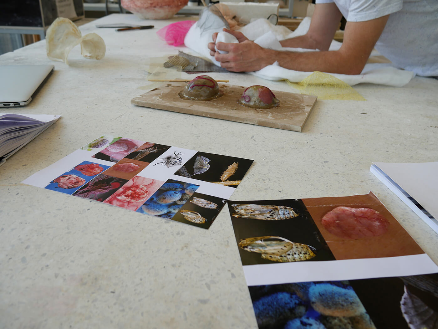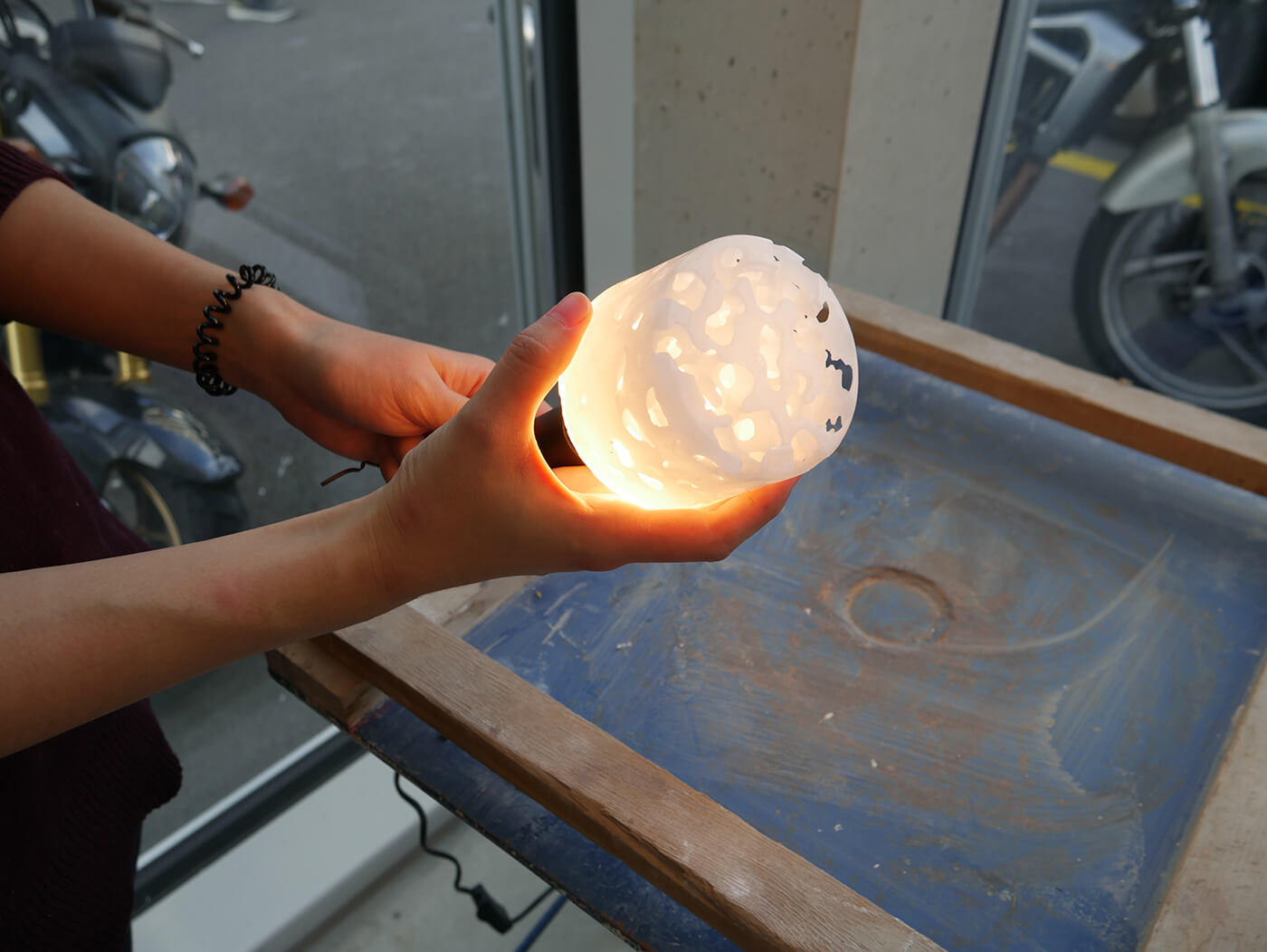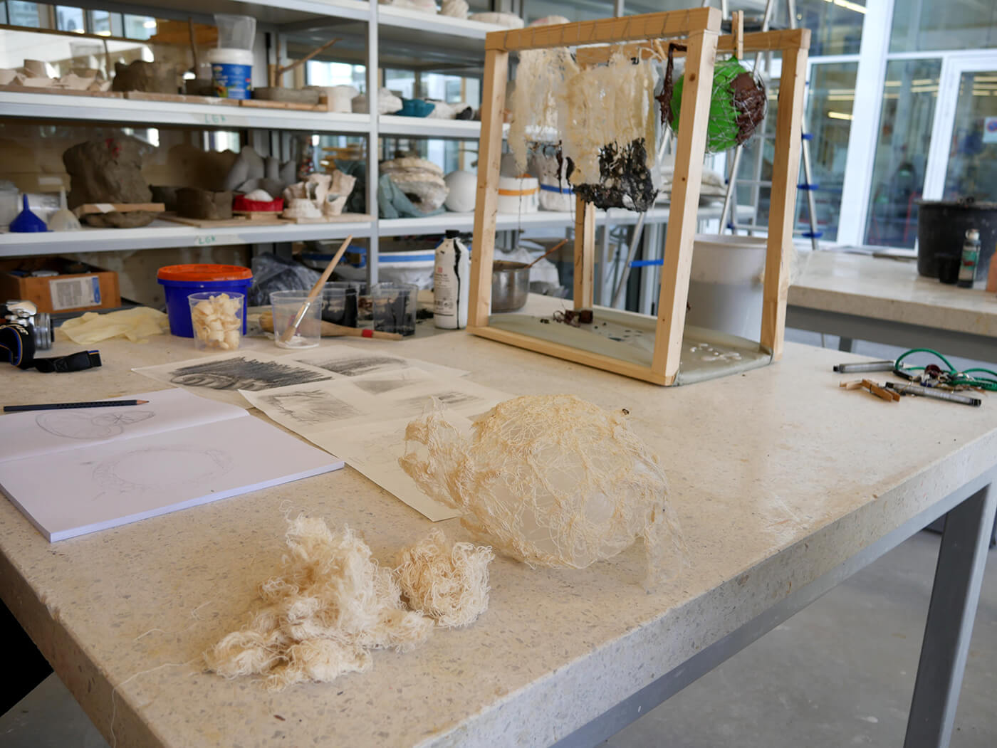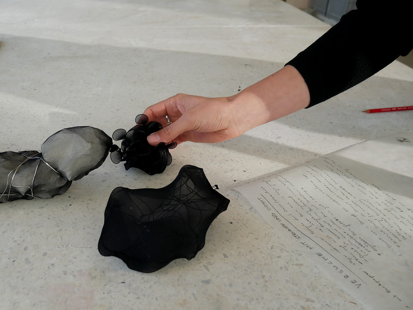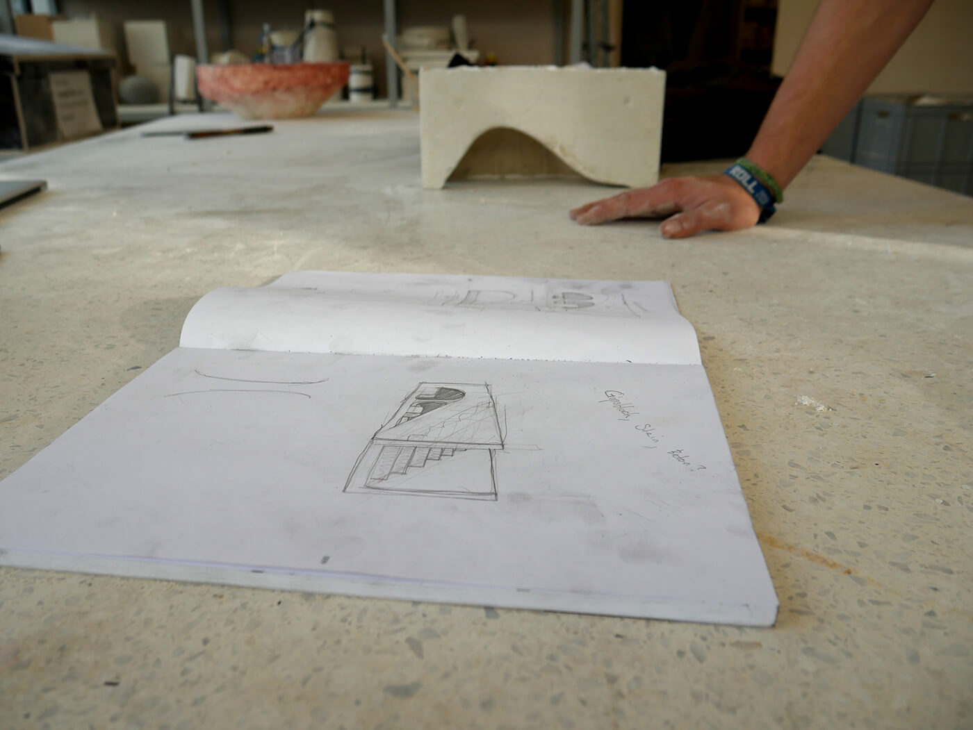 Über einfache Papiermodelle folgt die räumliche Annäherung in zunehmendem Abstraktionsgrad. Die Studierenden arbeiten konzentriert an der Komposition von Form, Proportion, an räumlichen Verhältnissen, an Materialstudien, an sinnlichen Elementen wie Duft, Geräusch und Licht. Das Erproben und Erforschen aller relevanten atmosphärischen Parameter wird geschult und geschärft.